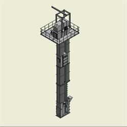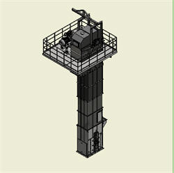 由于水泥企業規模的不斷擴大和節能減排的要求,在國內外采用輥壓機用于生料終粉磨和水泥聯合粉磨也越來越多,其單臺的能力也不斷擴大,使得與之相配套的輸送設備-單臺提升機的能力也在提高。由于此處的物料是塊狀的且磨琢性很大,因此只有板鏈提升機能夠適用。但由于輥壓機出輥物料不穩定及磨琢性大等特性及生產工藝問題,經常造成提升機堵料、漏料、設備振動、電機頻繁跳停、物料回料量大等現象,嚴重的影響了整個系統的運轉率。我公司集多年板鏈提升機設計和制造經驗,開發出了適用于此工藝系統的大輸送量的大型板鏈斗式提升機,使得整個工藝系統不因板鏈斗式提升機的故障而影響整個系統的運轉率。